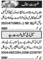 Vacant posts including computer operator, female staff, clerk, call operator and male staff are announced in Private Company Lahore, lahore Punjab Pakistan as per 5 April 2022 advertisement in daily Khabrain Newspaper. Candidates with Middle, Bachelor, Intermediate, Master and Matric etc. educational background will be preferred.