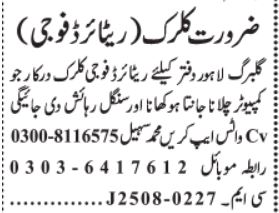 Clerk & Fauji Clerk Jobs 2025 in Lahore