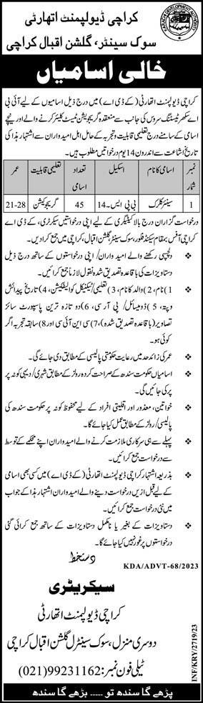 Karachi Development Authority KDA latest Government Admin Clerical jobs and others can be applied till 19 July 2023 or as per closing date in newspaper ad. Read complete ad online to know how to apply on latest Karachi Development Authority KDA job opportunities.