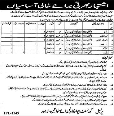 Clerk, Lab Attendant, Library Attendant, Naib Qasid