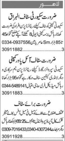 Private Company Lahore, lahore Punjab Pakistan invites applications from eligible candidates for the post of supervisor, call operator, clerk, office boy, laundry canteen staff, security supervisor guard, security staff, manager and security guard as per advertisement of March 6, 2025 published in daily Express Newspaper. Persons with Middle, Intermediate, Matric, BA and Bachelor etc. education can apply.
