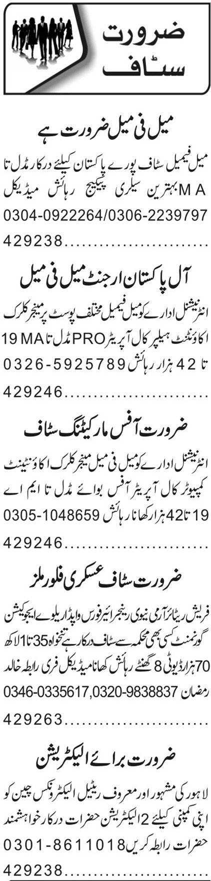 Private Company invites applications for job positions advertised in daily Roznama 92 News dated 20 January 2023 for following vacancies in Lahore, lahore Punjab Pakistan.