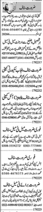 Private Company is looking for candidates for following posts as per job advertisement published in daily Dunya Newspaper of September 17, 2022 for location Lahore, lahore Punjab Pakistan: