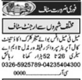 Private Company invites applications for job positions advertised in daily Khabrain dated 24 January 2024 for following vacancies in Lahore, lahore Punjab Pakistan.