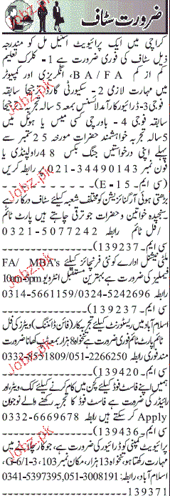 Clerks, Waiters, Drivers And Riders Job Opportunity