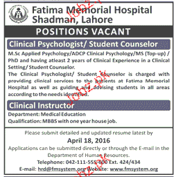Apply as per details in job advertisement. Login to view further details of how to apply via https://www.jobz.pk online.