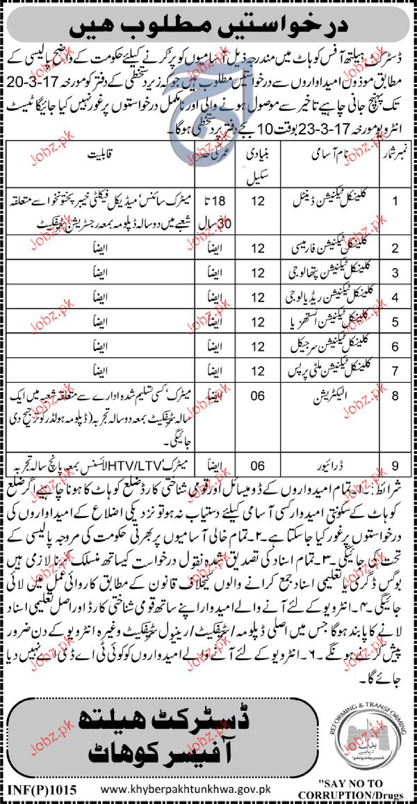 Latest Government Medical Posts Kohat 2025