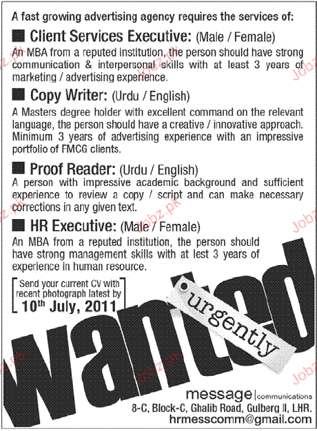 Apply as per details in job advertisement. Login to view further details of how to apply via https://www.jobz.pk online.