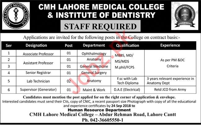 Vacancies in CMH Lahore Medical College Advertisement September 2018