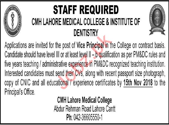 Vacancies in CMH Lahore Medical College Advertisement October 2018