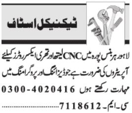 Factory invites applications for job positions advertised in daily Jang dated 10 June 2022 for following vacancies in Lahore, lahore Punjab Pakistan.