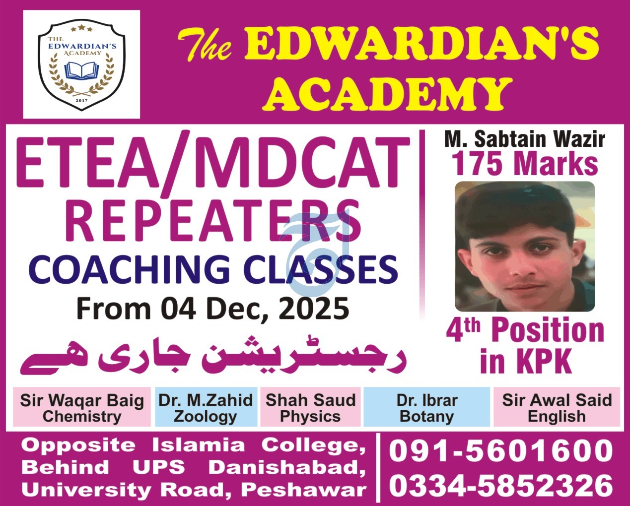 Coaching Classes of MDCAT, ETEA Admissions 2025 open in 7TH Edwardians