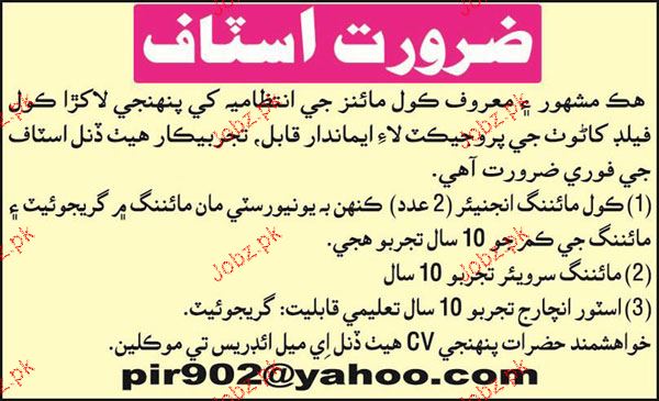 Apply as per details in job advertisement. Login to view further details of how to apply via https://www.jobz.pk online.