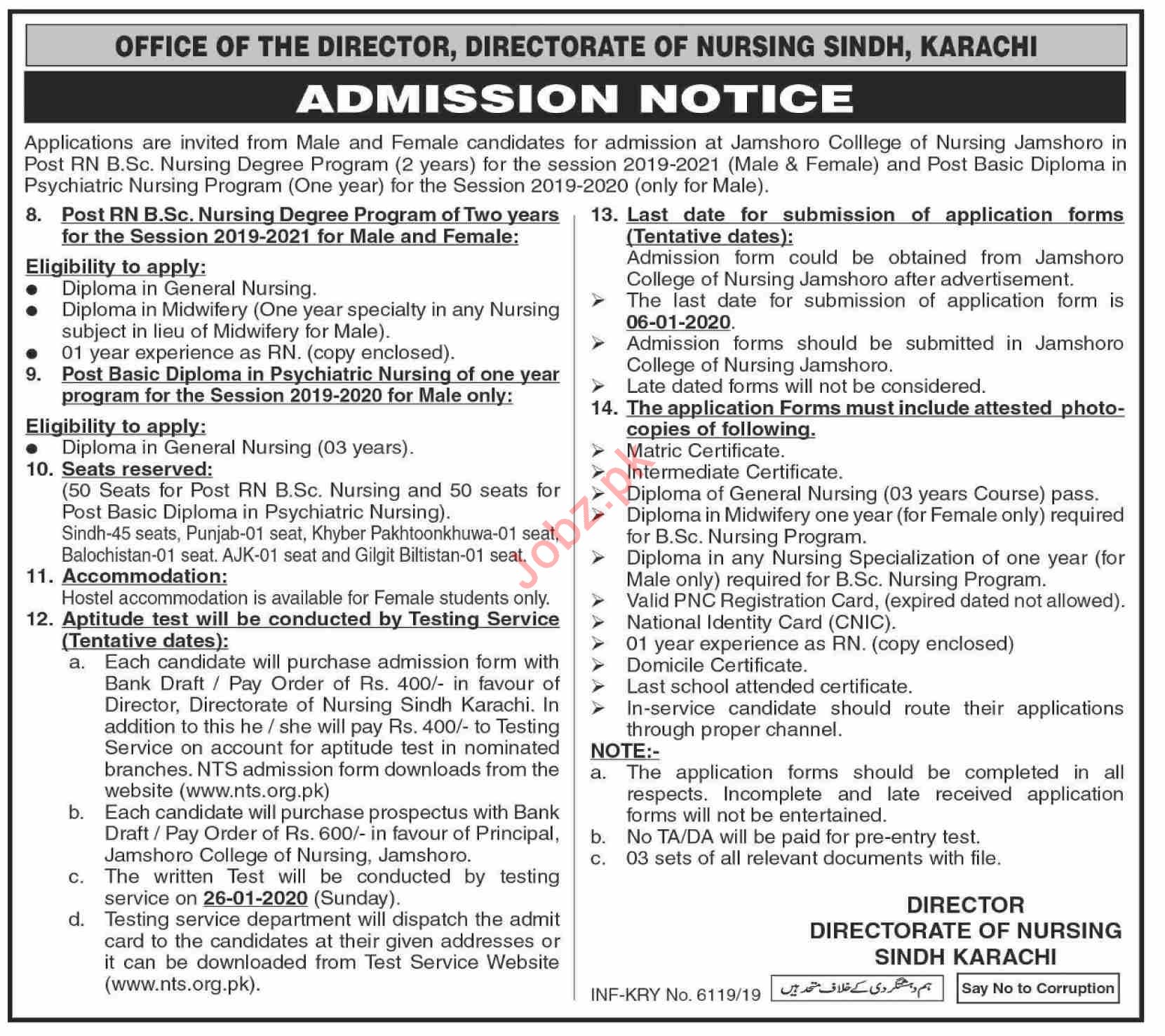 Jamshoro College of Nursing has announced admissions for Post RN BSc Nursing Degree Program & Post Basic Diploma in Psychiatric Nursing Program in Jamshoro. Read newspaper ad for exact details.