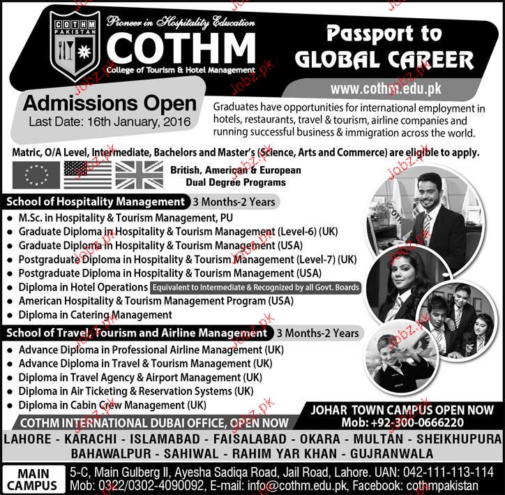 College of Tourism and Hotel Management Admission in Courses in Gujranwala. Read newspaper ad for exact details.