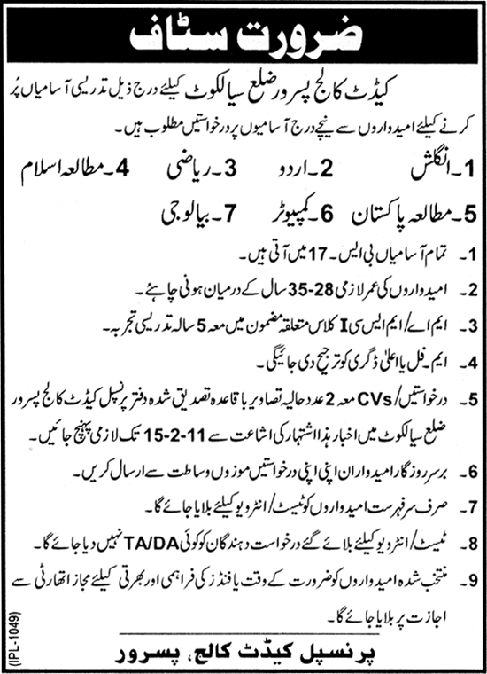 Apply as per details in job advertisement. Login to view further details of how to apply via https://www.jobz.pk online.