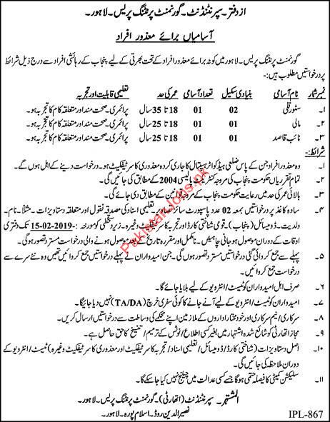 Latest Government Printing Press Admin Clerical Posts Lahore 2025