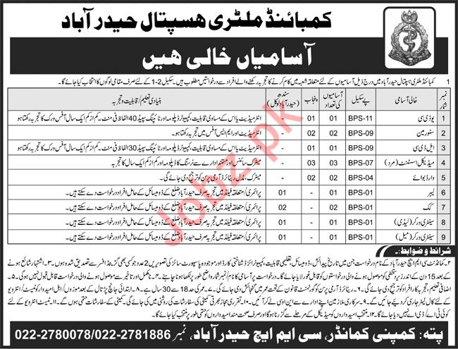 Combined Military Hospital CMH Hyderabad Jobs 2018
