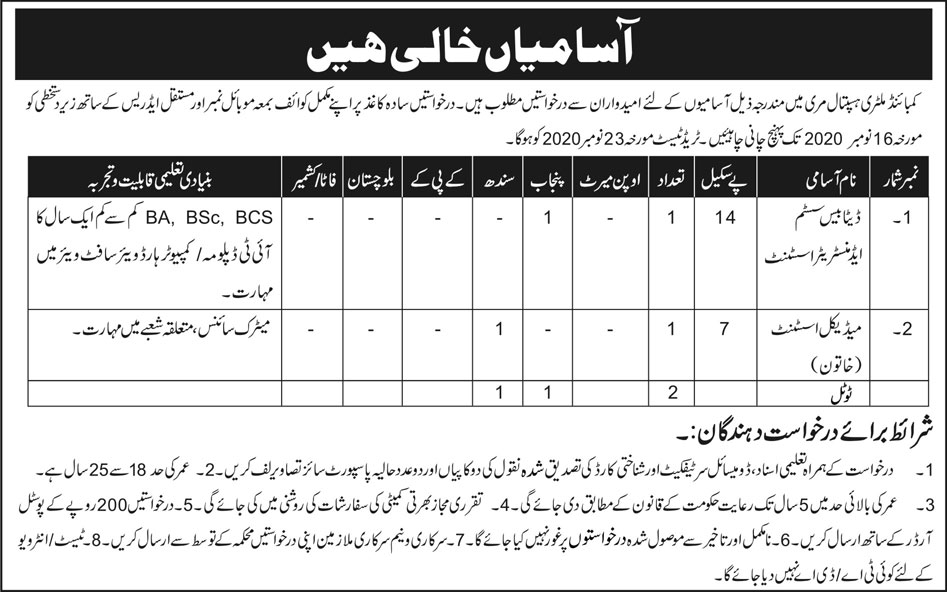 Latest Combined Military Hospital CMH Medical Posts Murree 2025