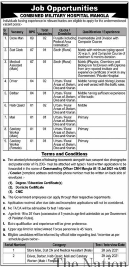 Latest Combined Military Hospital CMH Army jobs Posts Mangla 2025