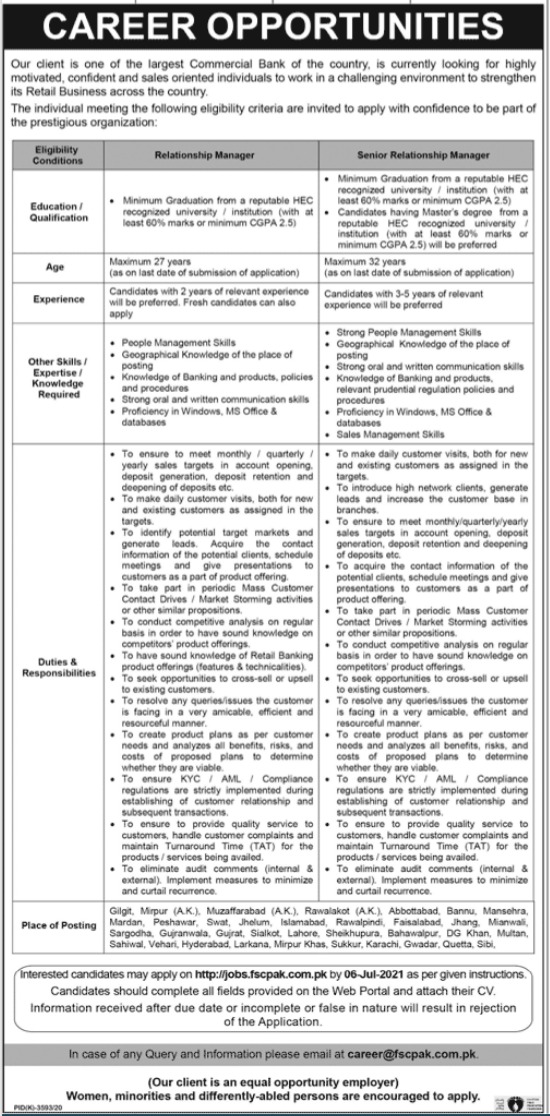 Apply as per details in job advertisement. Login to view further details of how to apply via https://www.jobz.pk online.