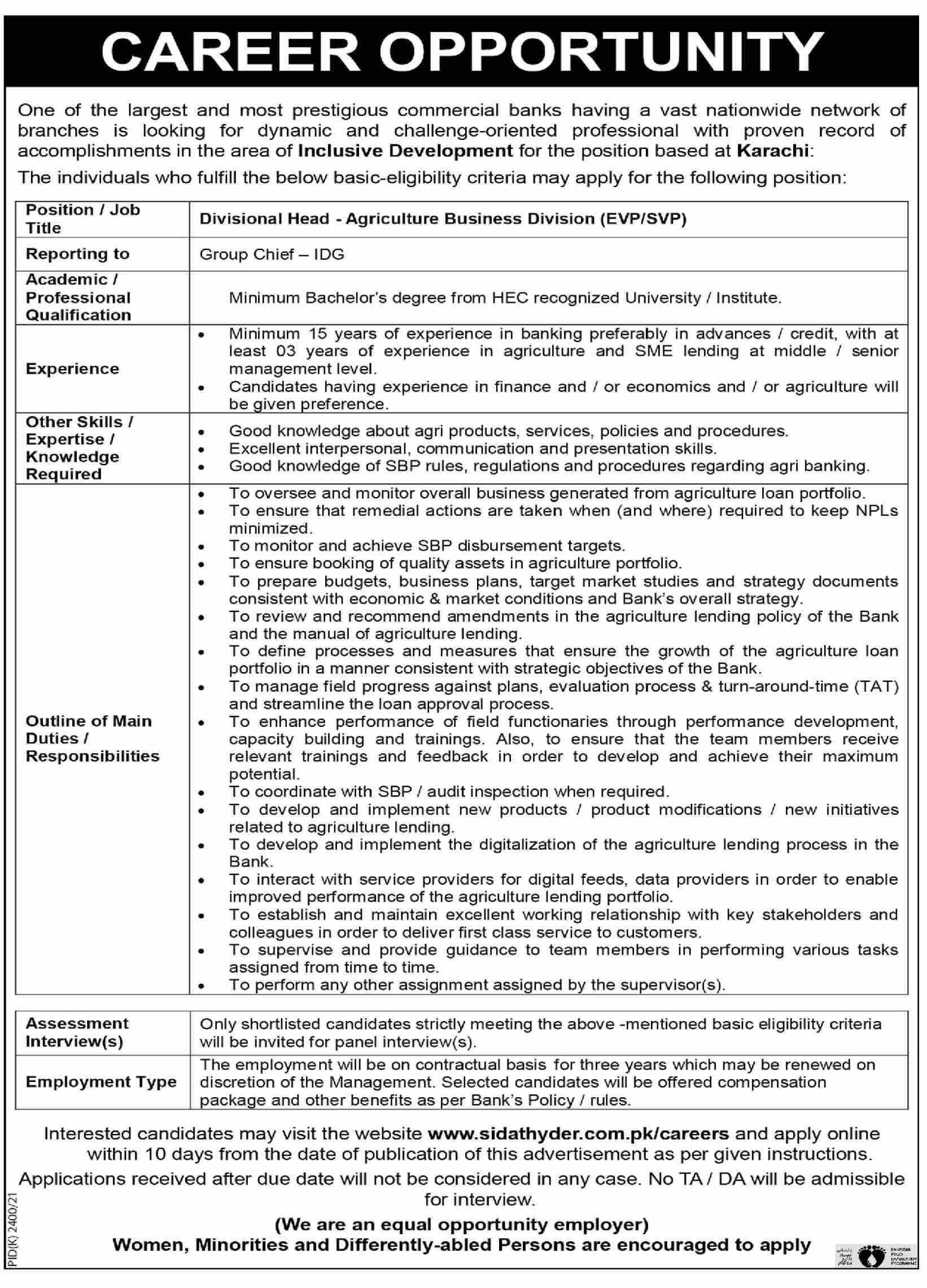 Vacant posts including divisional head are announced in Sidat Hyder Morshed Associates Karachi, karachi Sindh Pakistan as per 21 February 2022 advertisement in daily Dawn Newspaper. Candidates with Master and Bachelor etc. educational background will be preferred.