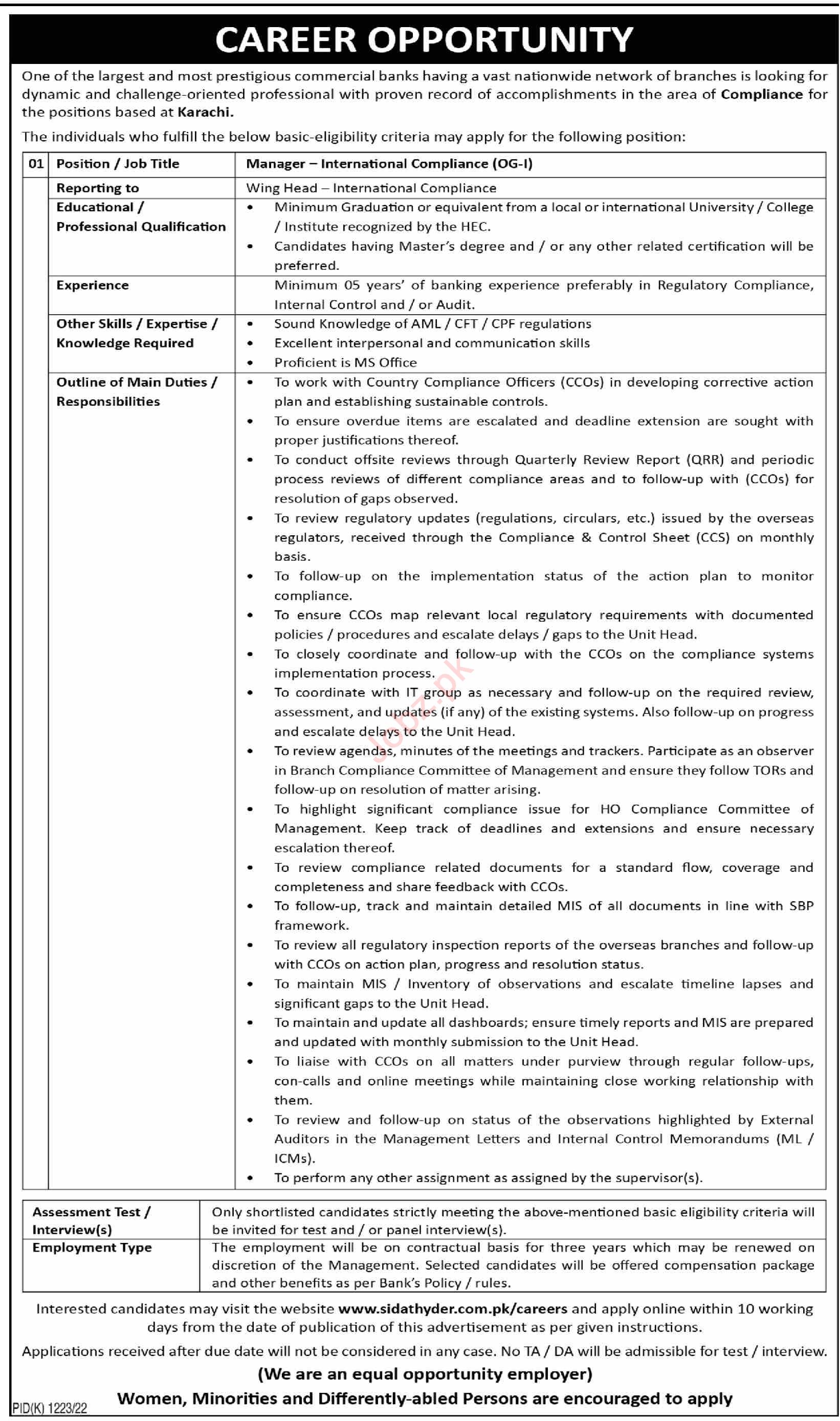 Commercial Bank Karachi Job Announcement 2022