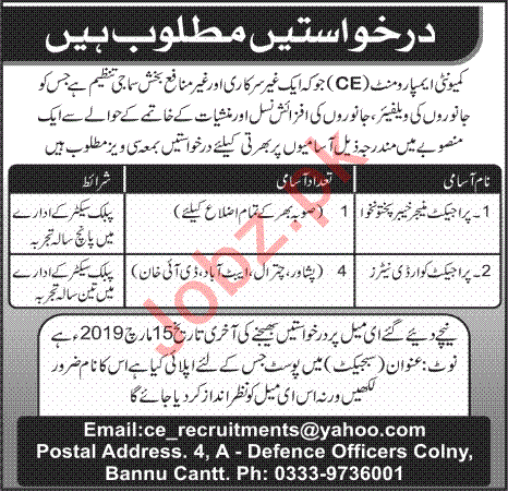 Community Empowerment Bannu NGO Jobs 2019 For Manager