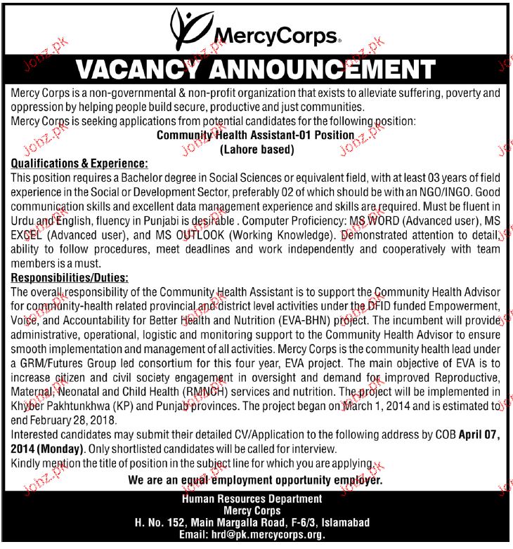 Apply as per details in job advertisement. Login to view further details of how to apply via https://www.jobz.pk online.