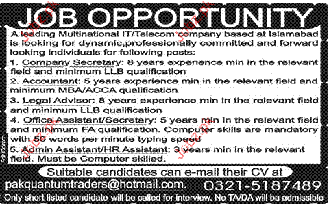 Latest Private Company Admin Clerical Posts Rawalpindi 2025