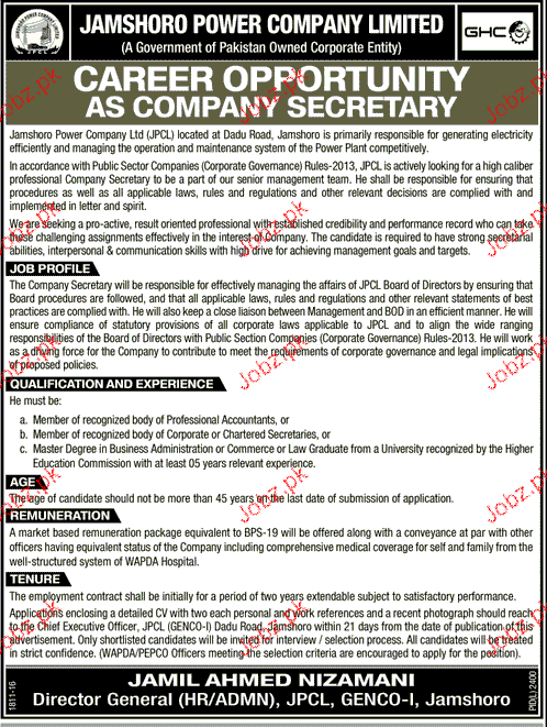 Apply as per details in job advertisement. Login to view further details of how to apply via https://www.jobz.pk online.