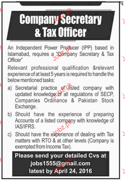 Apply as per details in job advertisement. Login to view further details of how to apply via https://www.jobz.pk online.