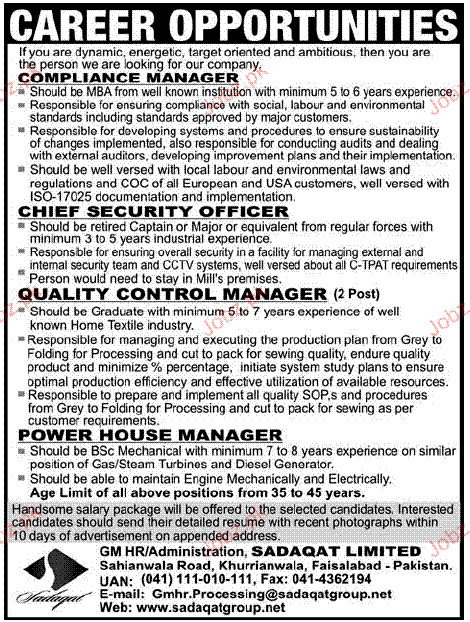 Apply as per details in job advertisement. Login to view further details of how to apply via https://www.jobz.pk online.