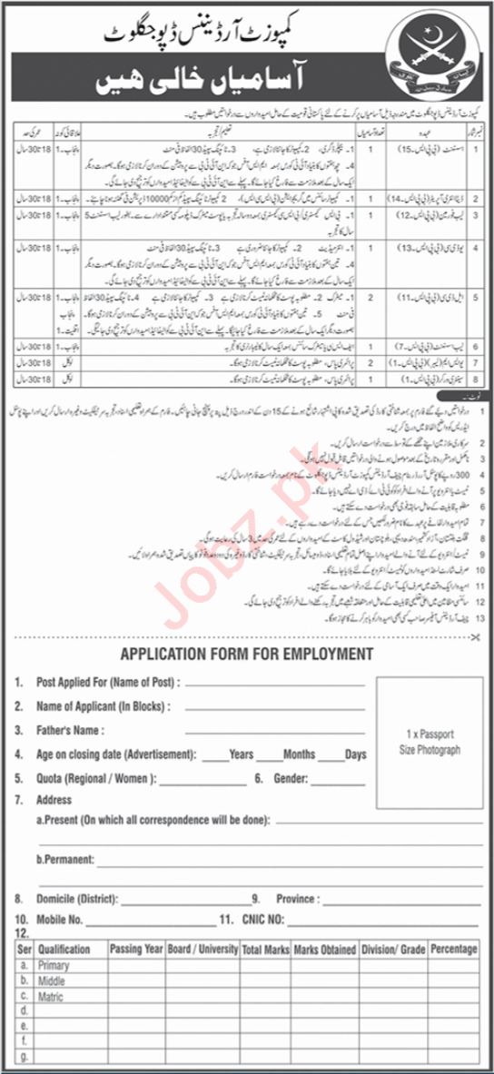 Composite Ordinance Depot is looking for candidates for following posts as per job advertisement published in daily Jang Newspaper of June 18, 2023 for location Gilgit, gilgit Gilgit Baltistan Pakistan: