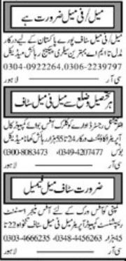 Private Company Lahore, lahore Punjab Pakistan invites applications from eligible candidates for the post of assistant, accountant, receptionist, office boy, clerk, computer operator, computer call operator, office manager and office staff as per advertisement of May 31, 2022 published in daily Khabrain Newspaper. Educational qualifications required Middle, Matric, Bachelor and Intermediate etc.