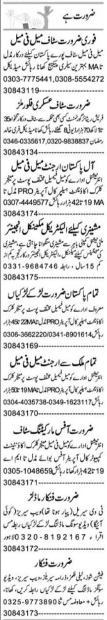 Private Company Multan, multan Punjab Pakistan invites applications from eligible candidates for the post of accountant, female office staff, mechanical engineer, call operator, office staff, helper, pro, electrical engineer, manager, clerk, marketing staff, model, public relation officer, computer call operator, actor, office boy and engineer as per advertisement of February 10, 2023 published in daily Express Newspaper. Persons with Intermediate, Matric, Bachelor and Middle etc. education can apply.