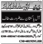 Apply as per details in job advertisement. Login to view further details of how to apply via https://www.jobz.pk online.