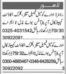 Computer Call Operator & Office Boy Jobs 2025 In Lahore
