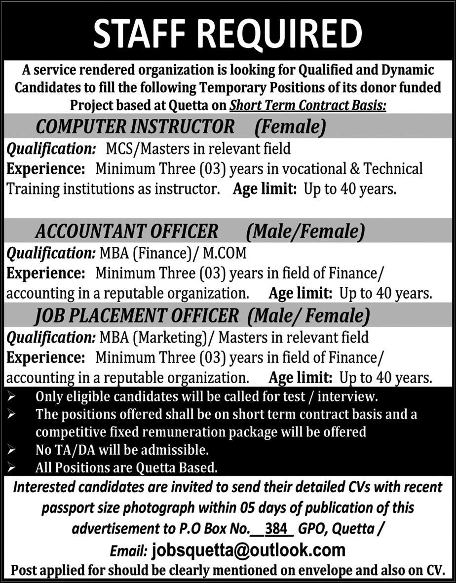 Apply as per details in job advertisement. Login to view further details of how to apply via https://www.jobz.pk online.