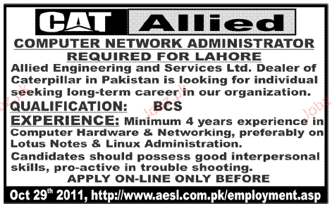 Apply as per details in job advertisement. Login to view further details of how to apply via https://www.jobz.pk online.