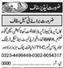 Apply as per details in job advertisement. Login to view further details of how to apply via https://www.jobz.pk online.