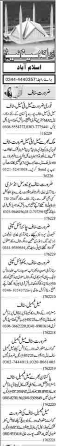 Private Company is looking for candidates for following posts as per job advertisement published in daily Dunya Newspaper of June 17, 2022 for location Rawalpindi, islamabad Punjab Pakistan: