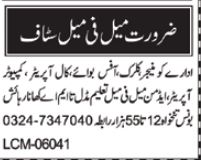 Private Organization Multan, multan Punjab Pakistan invites applications from eligible candidates for the post of computer operator, clerk, manager, call operator, office boy and admin staff as per advertisement of January 30, 2023 published in daily Nawaiwaqt Newspaper. Persons with Master, Matric, Middle, Bachelor and Intermediate etc. education can apply.