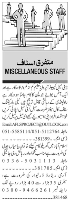 Private Company invites applications for job positions advertised in daily Jang dated 23 February 2024 for following vacancies in Islamabad, islamabad Islamabad Pakistan.