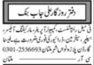 Private Office is looking for candidates for following posts as per job advertisement published in daily Khabrain Newspaper of November 8, 2023 for location Multan, multan Punjab Pakistan: