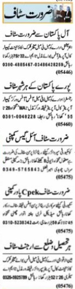 Vacant posts including field staff, supervisor, office boy, field worker, call operator, computer operator, retired person, office staff, security supervisor, accountant, manager, office worker, computer call operator and clerk are announced in Private Lahore, lahore Punjab Pakistan as per 14 November 2023 advertisement in daily Nawaiwaqt Newspaper. Master, Intermediate, Matric, Middle and Bachelor etc. educational qualification will be preferred.