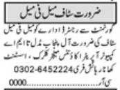 Private Company invites applications for job positions advertised in daily Khabrain dated 9 March 2024 for following vacancies in Lahore, lahore Punjab Pakistan.