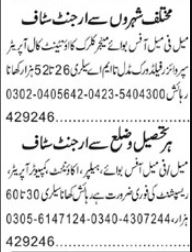 Private Company Lahore, lahore Punjab Pakistan invites applications from eligible candidates for the post of computer operator, accountant, office boy, manager, call operator, field worker, clerk, receptionist and supervisor as per advertisement of January 18, 2024 published in daily Roznama 92 News Newspaper. Persons with BA, Intermediate, Bachelor, Middle, B.com and Matric etc. education can apply.
