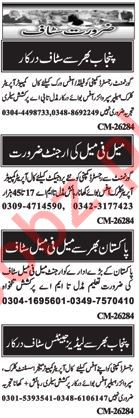 A well known companies based in Lahore seeks candidates for the posts of Computer Operator, Call Operator, Assistant Manager, Branch Manager, Receptionist, HR Officer, Supervisor, Assistant Supervisor, Account Manager, Office Assistant, Clerk, Naib Qasid, Watchman, Sanitary Worker, Security Guard and Driver.