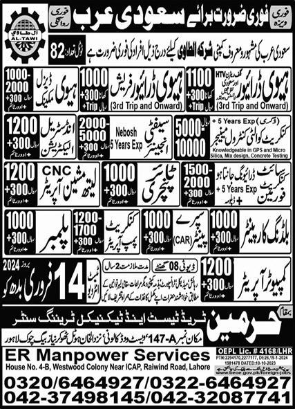 Harmain Trade Test & Technical Training Center invites applications for job positions advertised in daily Express dated 10 February 2024 for following vacancies in Dammam, riyadh Saudi Arabia.